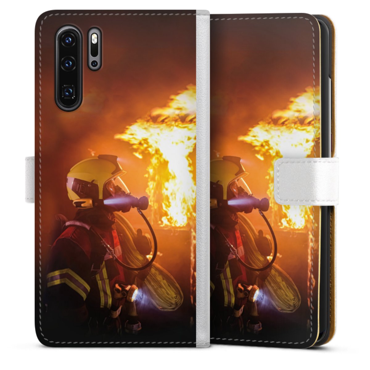 For our Sideflip Case we are using our advanced direct printing technology. The back and frontside are fully printabale, the inside of the phone bag is left unprinted. You can order the phone case without print, printed completely or also with a partial print.