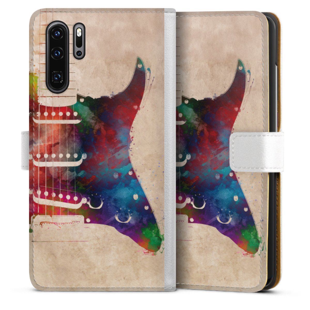 For our Sideflip Case we are using our advanced direct printing technology. The back and frontside are fully printabale, the inside of the phone bag is left unprinted. You can order the phone case without print, printed completely or also with a partial print.