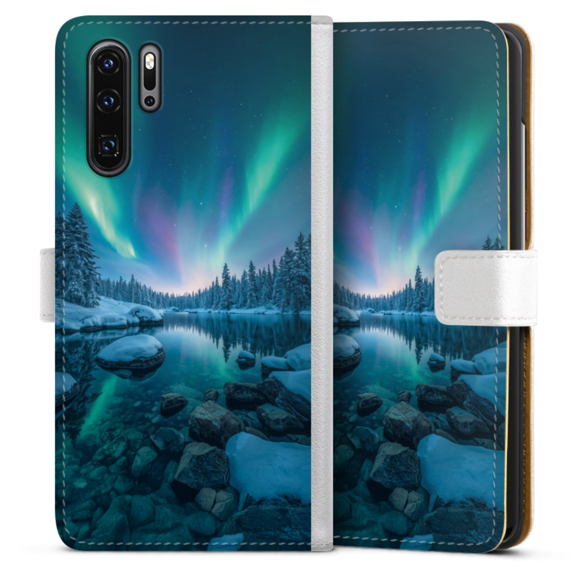 For our Sideflip Case we are using our advanced direct printing technology. The back and frontside are fully printabale, the inside of the phone bag is left unprinted. You can order the phone case without print, printed completely or also with a partial print.