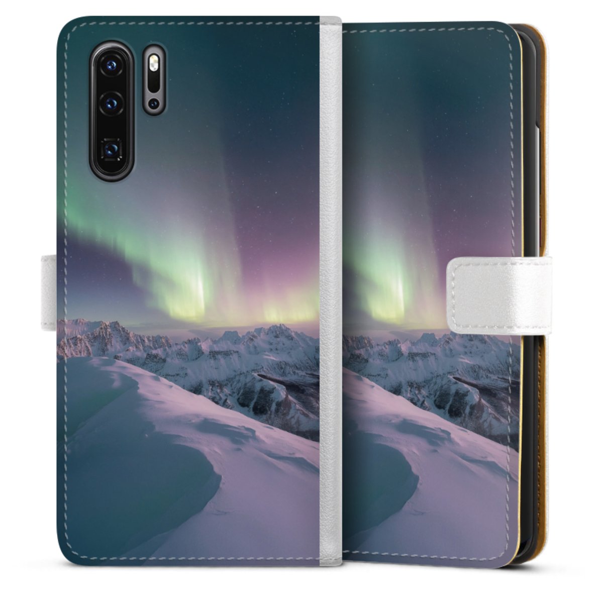 For our Sideflip Case we are using our advanced direct printing technology. The back and frontside are fully printabale, the inside of the phone bag is left unprinted. You can order the phone case without print, printed completely or also with a partial print.