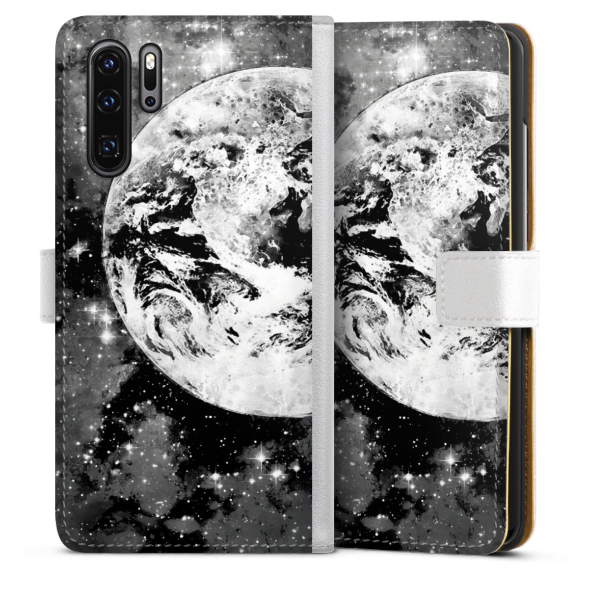 For our Sideflip Case we are using our advanced direct printing technology. The back and frontside are fully printabale, the inside of the phone bag is left unprinted. You can order the phone case without print, printed completely or also with a partial print.
