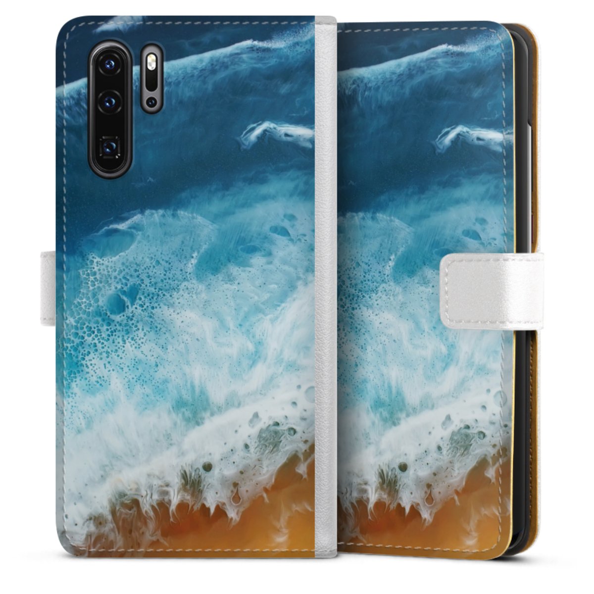 For our Sideflip Case we are using our advanced direct printing technology. The back and frontside are fully printabale, the inside of the phone bag is left unprinted. You can order the phone case without print, printed completely or also with a partial print.