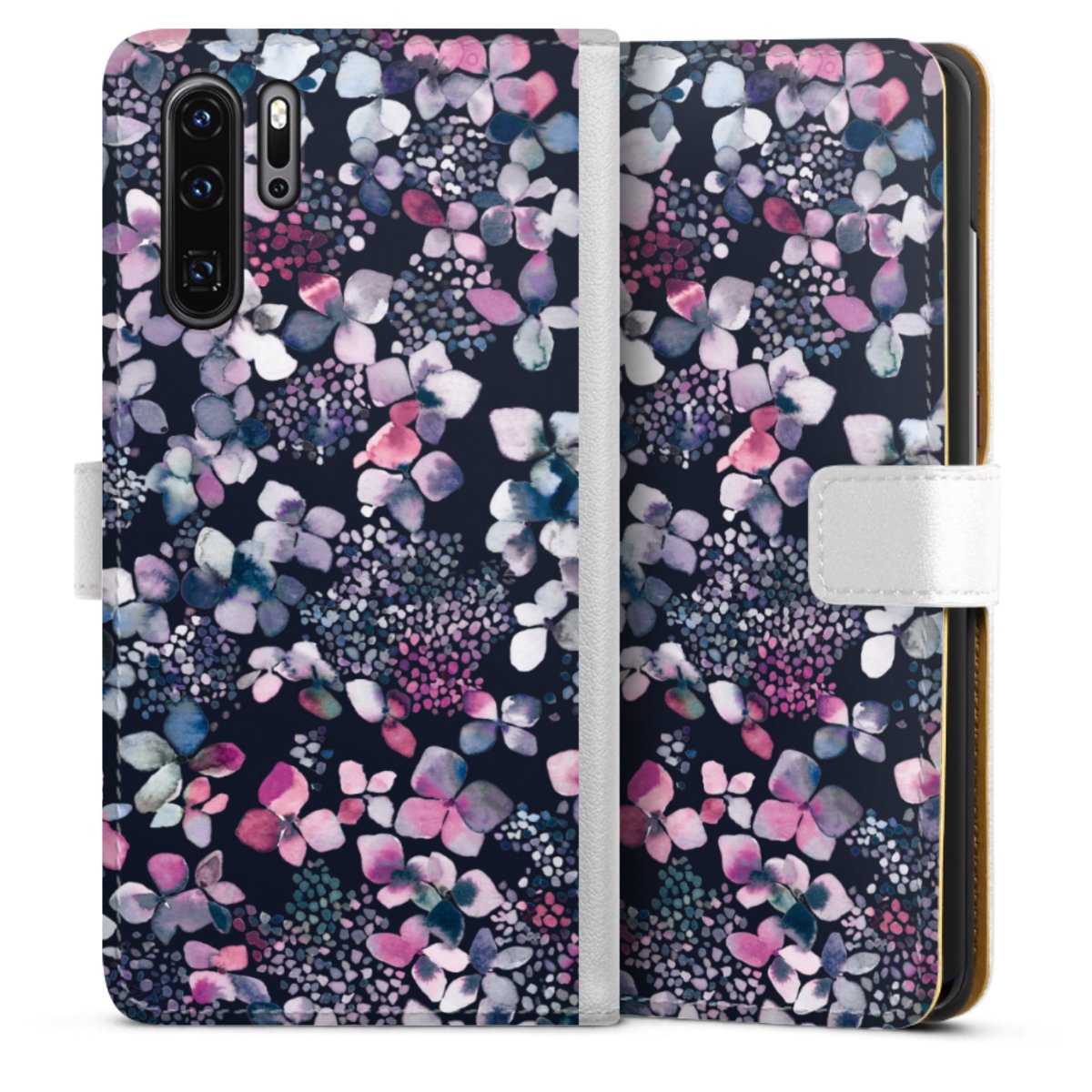 For our Sideflip Case we are using our advanced direct printing technology. The back and frontside are fully printabale, the inside of the phone bag is left unprinted. You can order the phone case without print, printed completely or also with a partial print.