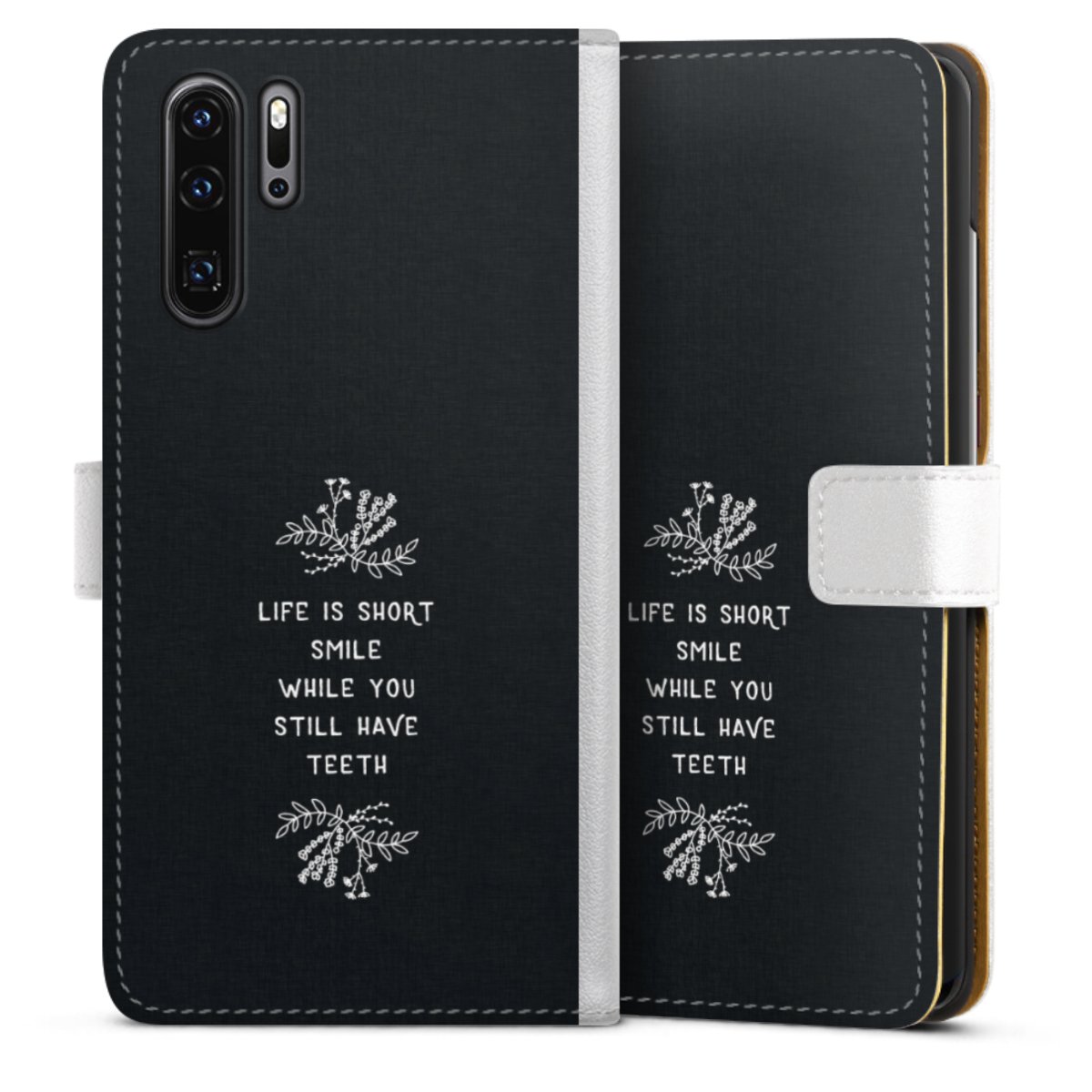 For our Sideflip Case we are using our advanced direct printing technology. The back and frontside are fully printabale, the inside of the phone bag is left unprinted. You can order the phone case without print, printed completely or also with a partial print.