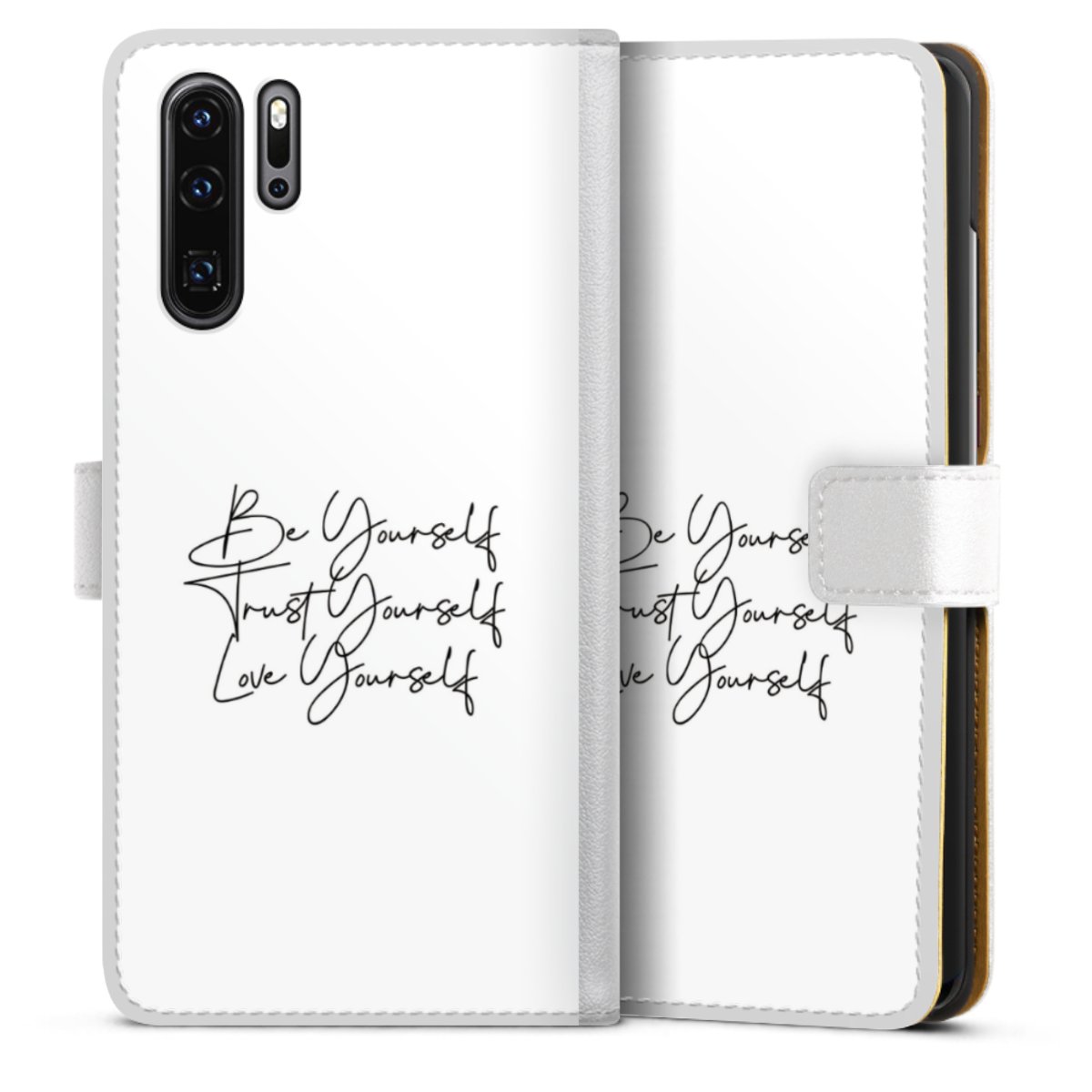For our Sideflip Case we are using our advanced direct printing technology. The back and frontside are fully printabale, the inside of the phone bag is left unprinted. You can order the phone case without print, printed completely or also with a partial print.