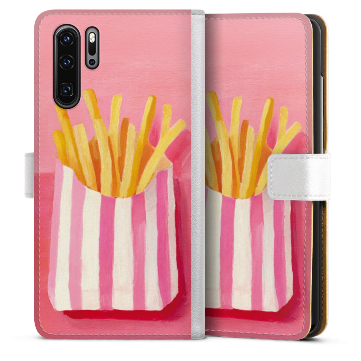 For our Sideflip Case we are using our advanced direct printing technology. The back and frontside are fully printabale, the inside of the phone bag is left unprinted. You can order the phone case without print, printed completely or also with a partial print.