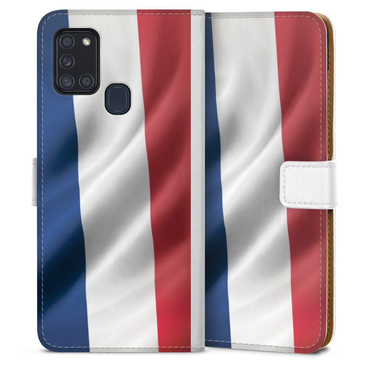 For our Sideflip Case we are using our advanced direct printing technology. The back and frontside are fully printabale, the inside of the phone bag is left unprinted. You can order the phone case without print, printed completely or also with a partial print.