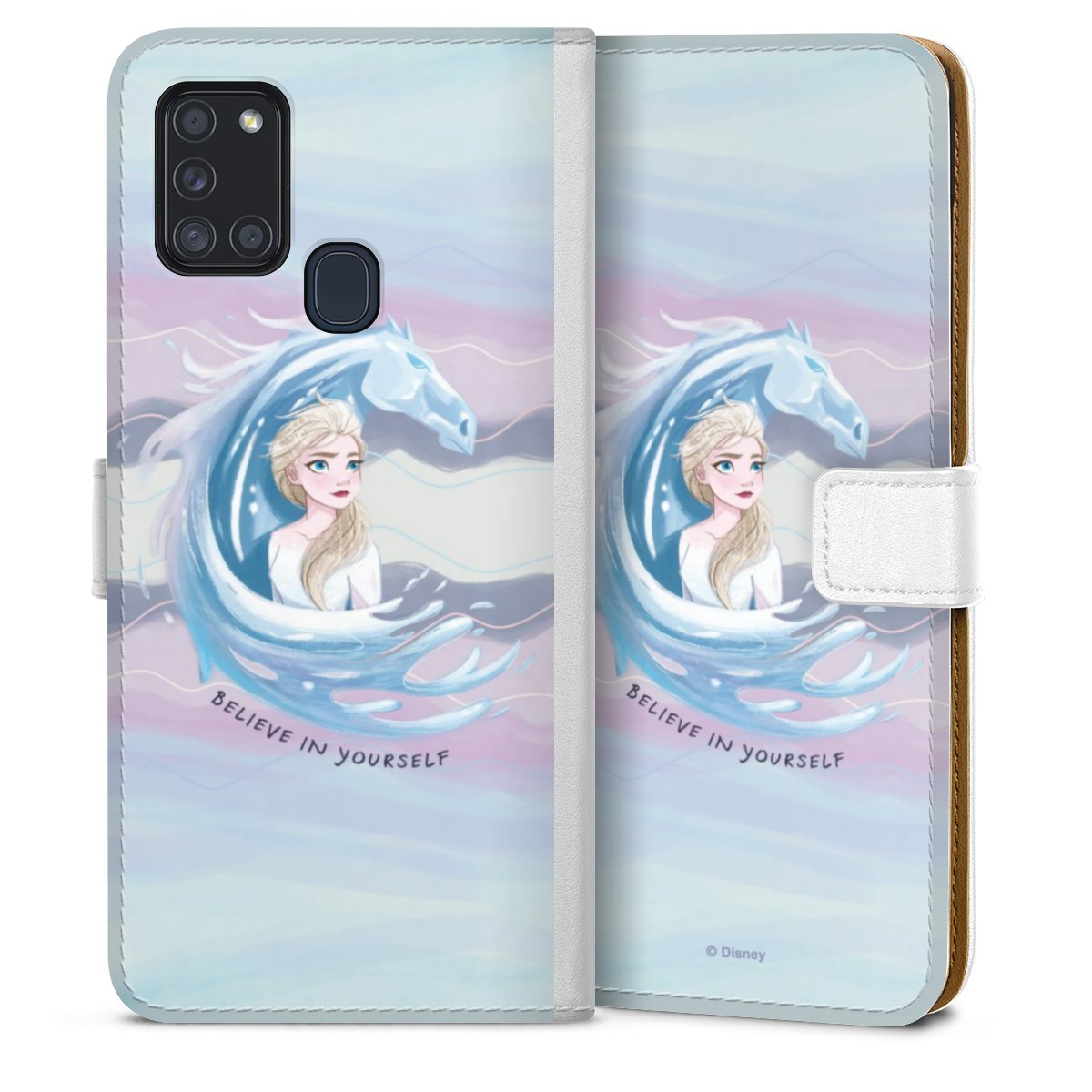 For our Sideflip Case we are using our advanced direct printing technology. The back and frontside are fully printabale, the inside of the phone bag is left unprinted. You can order the phone case without print, printed completely or also with a partial print.