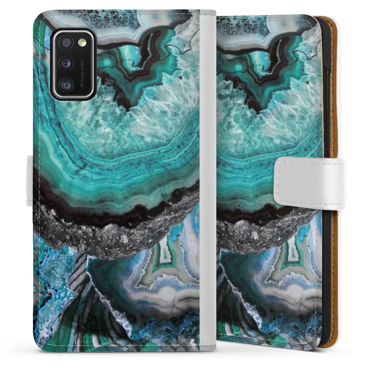 For our Sideflip Case we are using our advanced direct printing technology. The back and frontside are fully printabale, the inside of the phone bag is left unprinted. You can order the phone case without print, printed completely or also with a partial print.