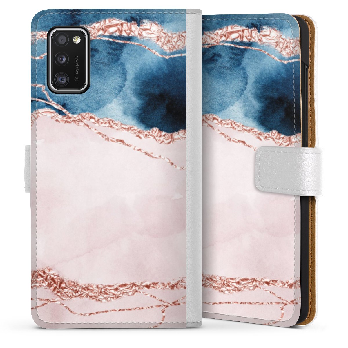 For our Sideflip Case we are using our advanced direct printing technology. The back and frontside are fully printabale, the inside of the phone bag is left unprinted. You can order the phone case without print, printed completely or also with a partial print.