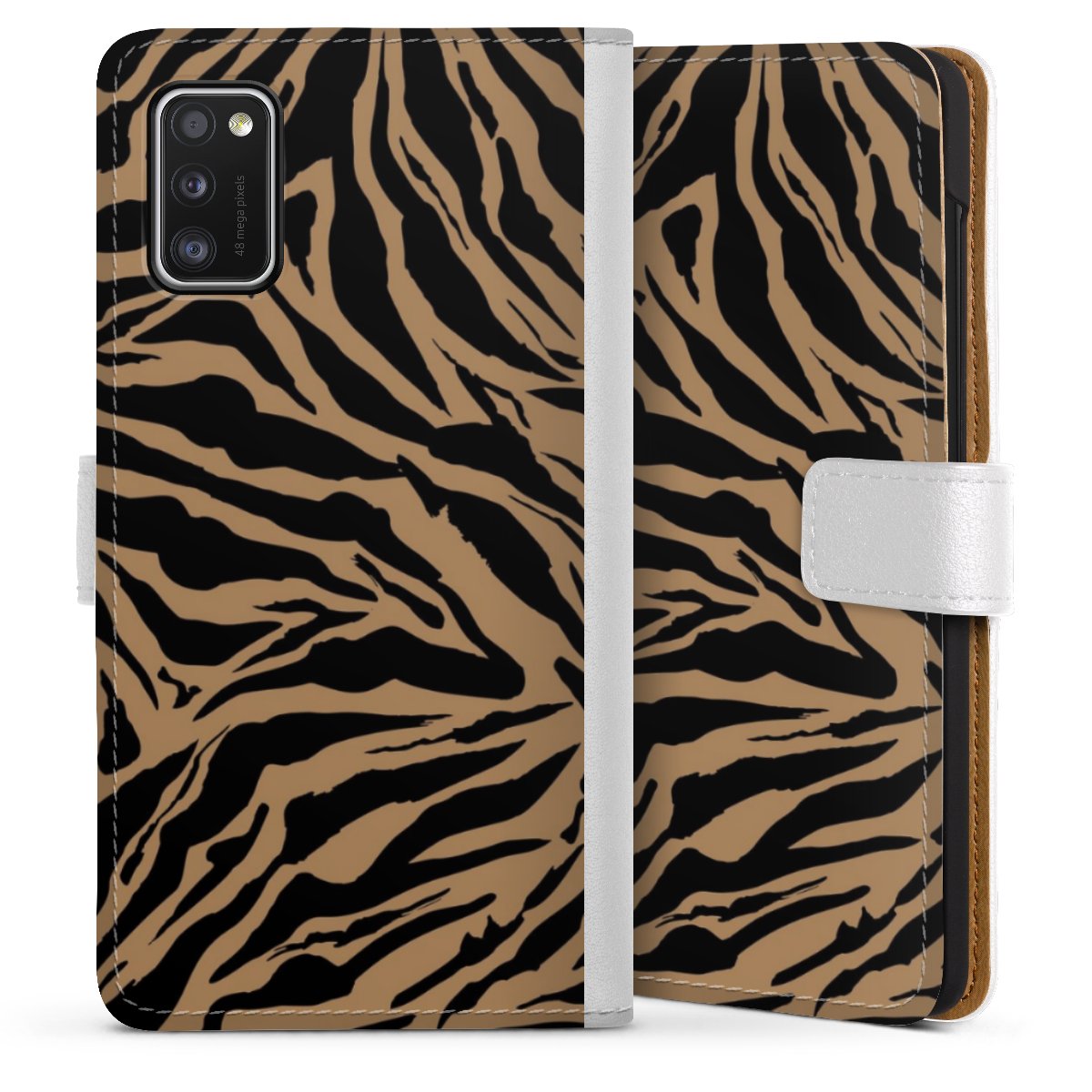 For our Sideflip Case we are using our advanced direct printing technology. The back and frontside are fully printabale, the inside of the phone bag is left unprinted. You can order the phone case without print, printed completely or also with a partial print.