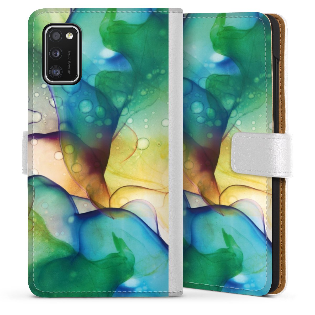 For our Sideflip Case we are using our advanced direct printing technology. The back and frontside are fully printabale, the inside of the phone bag is left unprinted. You can order the phone case without print, printed completely or also with a partial print.