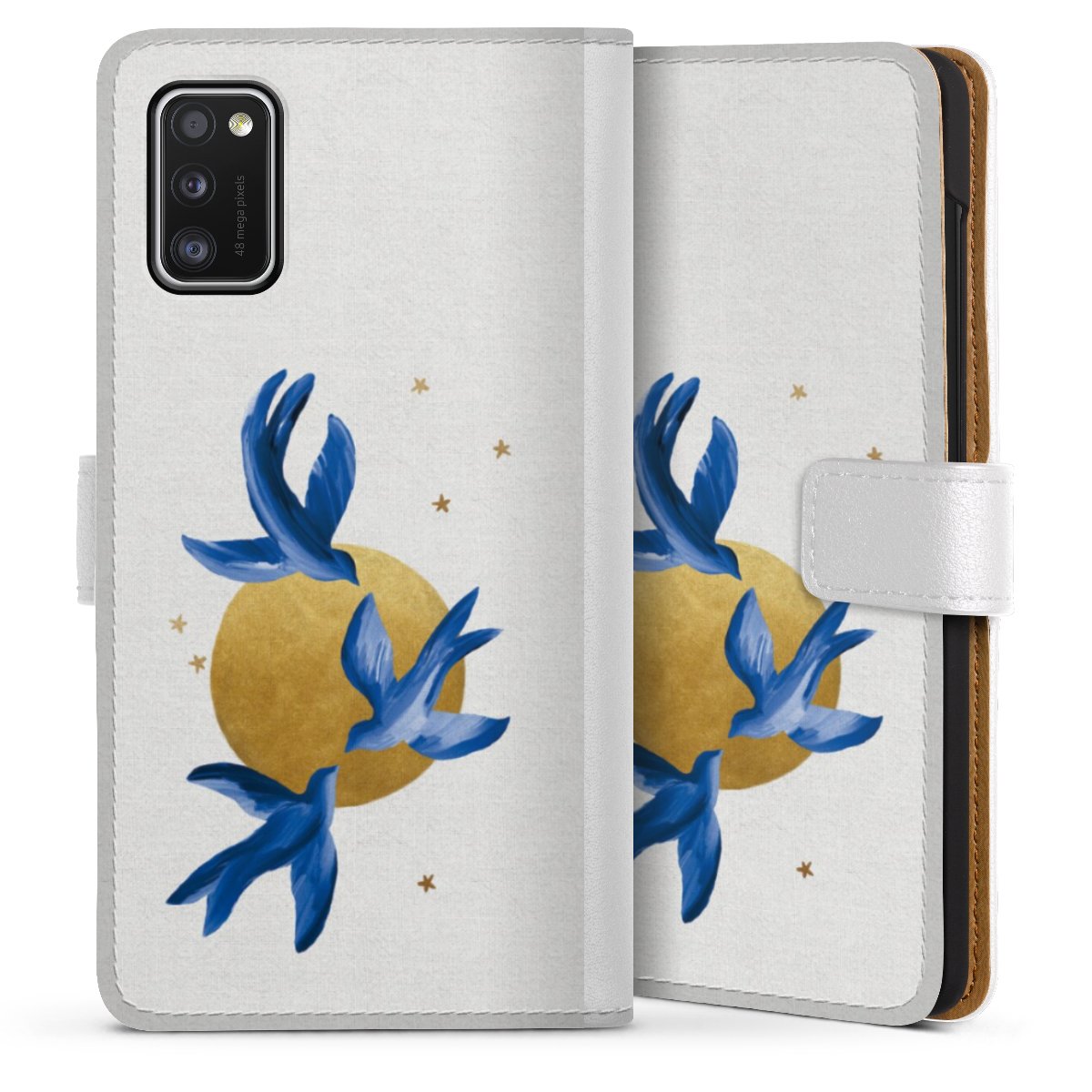 For our Sideflip Case we are using our advanced direct printing technology. The back and frontside are fully printabale, the inside of the phone bag is left unprinted. You can order the phone case without print, printed completely or also with a partial print.