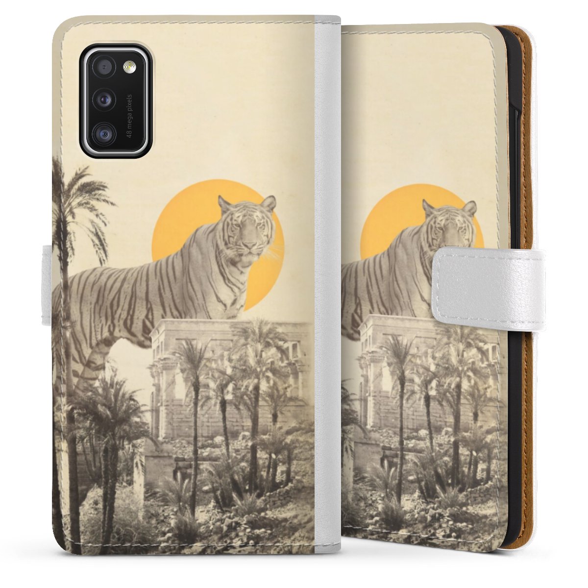 For our Sideflip Case we are using our advanced direct printing technology. The back and frontside are fully printabale, the inside of the phone bag is left unprinted. You can order the phone case without print, printed completely or also with a partial print.