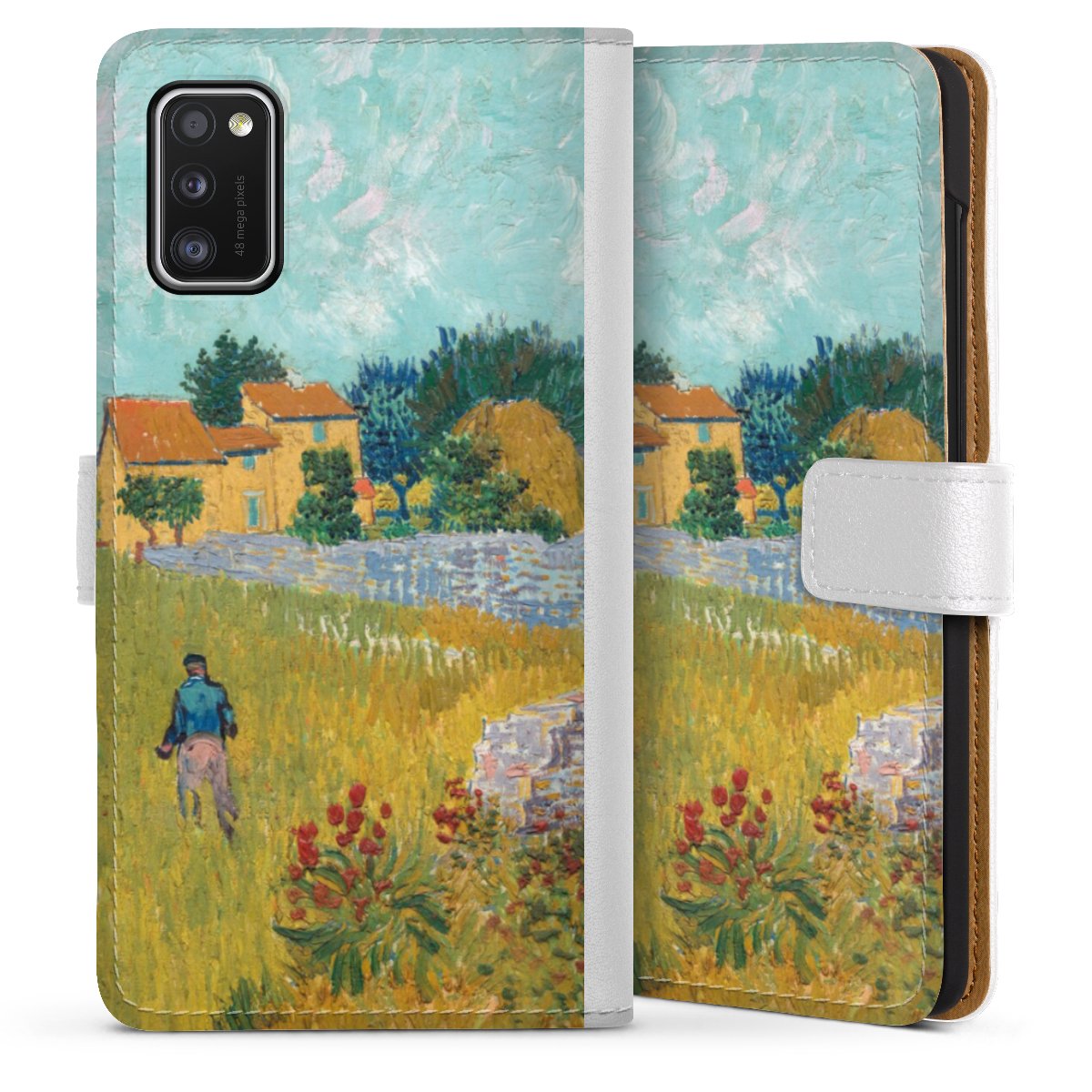 For our Sideflip Case we are using our advanced direct printing technology. The back and frontside are fully printabale, the inside of the phone bag is left unprinted. You can order the phone case without print, printed completely or also with a partial print.