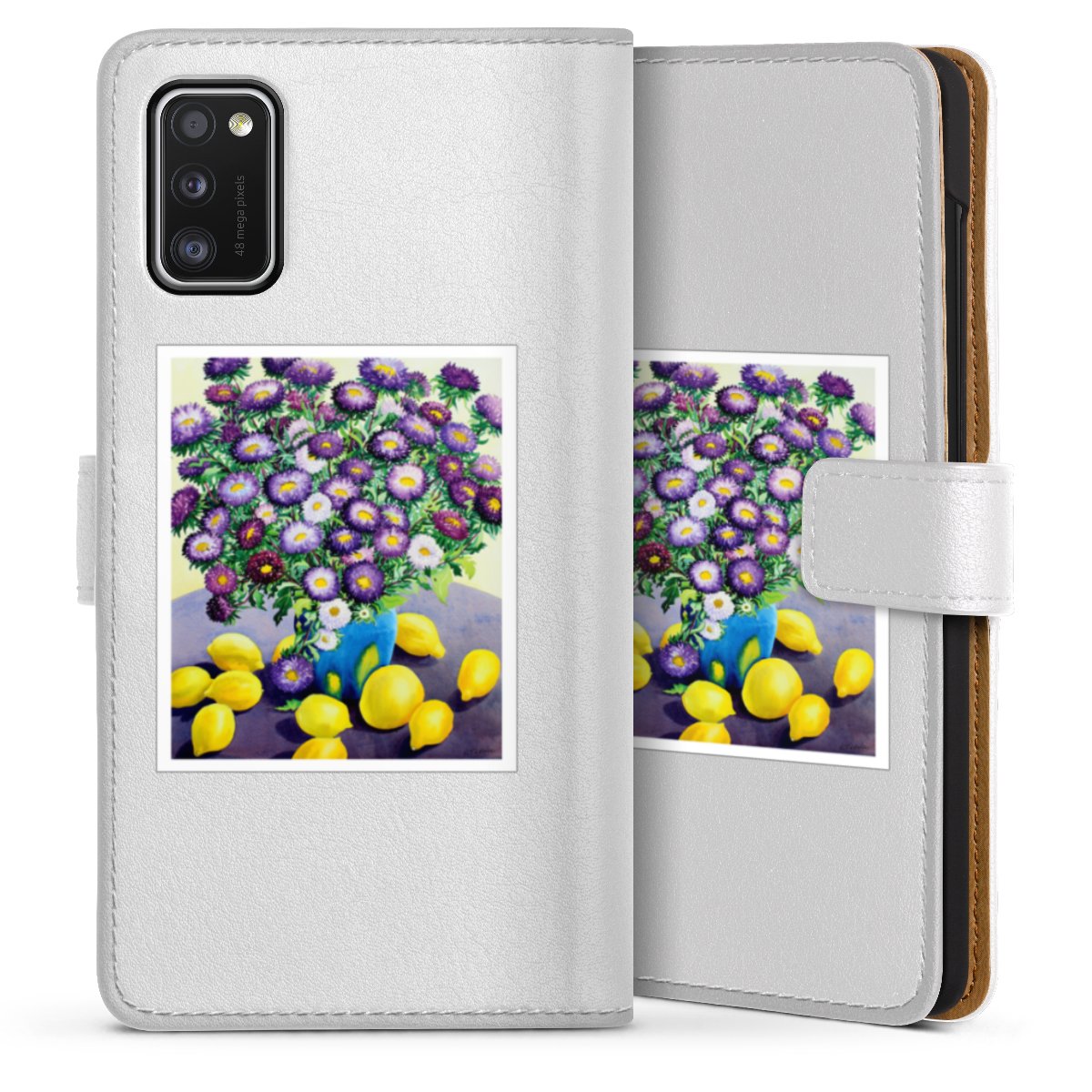 For our Sideflip Case we are using our advanced direct printing technology. The back and frontside are fully printabale, the inside of the phone bag is left unprinted. You can order the phone case without print, printed completely or also with a partial print.