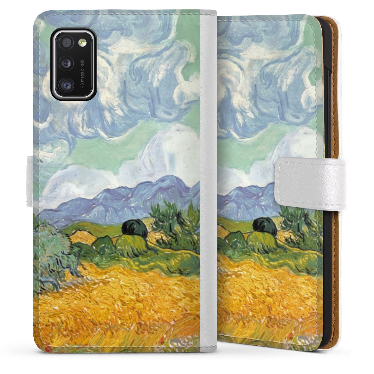 For our Sideflip Case we are using our advanced direct printing technology. The back and frontside are fully printabale, the inside of the phone bag is left unprinted. You can order the phone case without print, printed completely or also with a partial print.