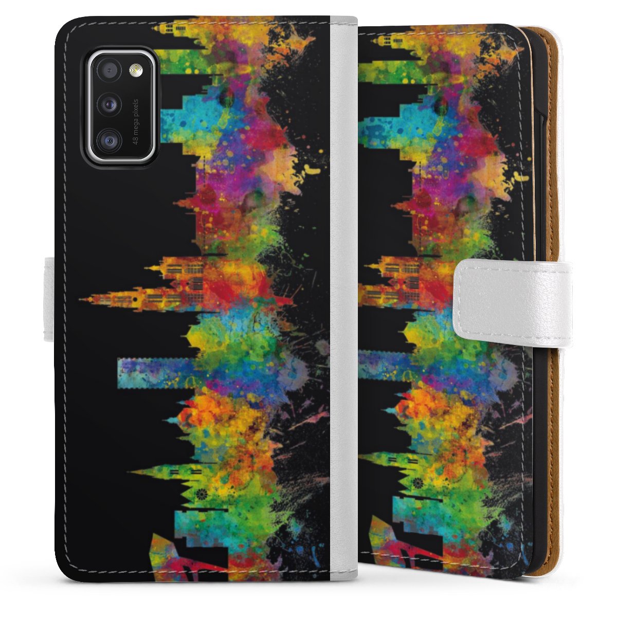 For our Sideflip Case we are using our advanced direct printing technology. The back and frontside are fully printabale, the inside of the phone bag is left unprinted. You can order the phone case without print, printed completely or also with a partial print.