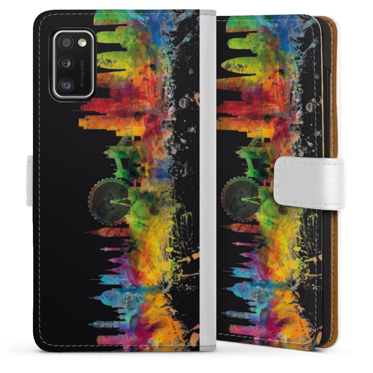 For our Sideflip Case we are using our advanced direct printing technology. The back and frontside are fully printabale, the inside of the phone bag is left unprinted. You can order the phone case without print, printed completely or also with a partial print.