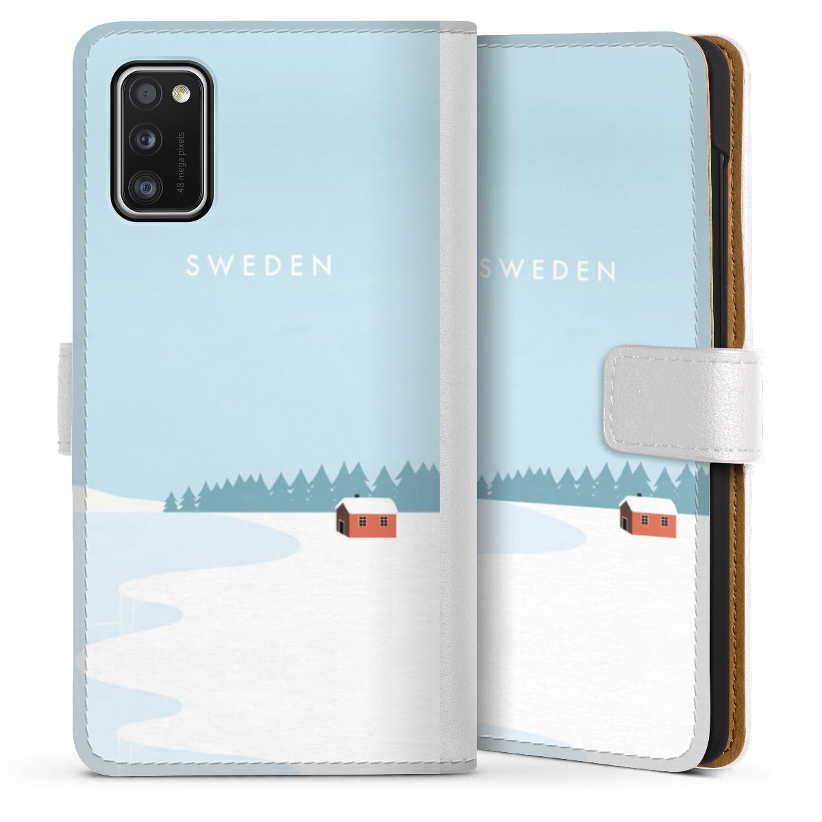 For our Sideflip Case we are using our advanced direct printing technology. The back and frontside are fully printabale, the inside of the phone bag is left unprinted. You can order the phone case without print, printed completely or also with a partial print.