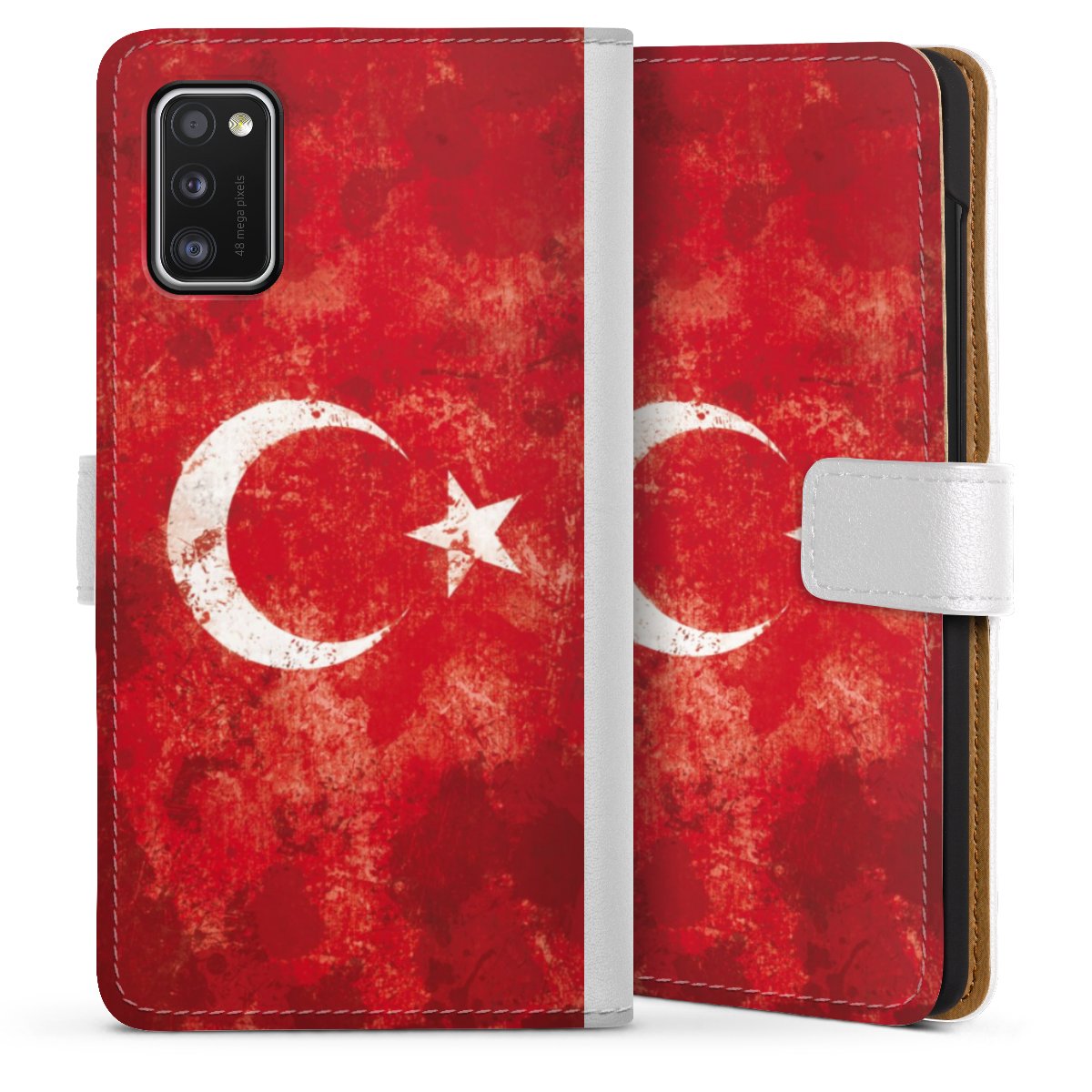 For our Sideflip Case we are using our advanced direct printing technology. The back and frontside are fully printabale, the inside of the phone bag is left unprinted. You can order the phone case without print, printed completely or also with a partial print.