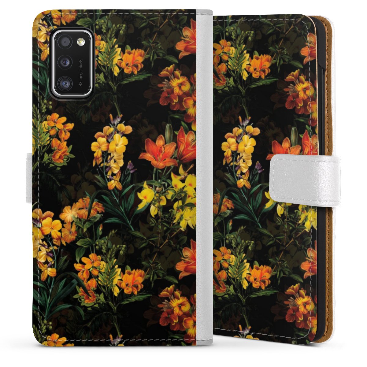 For our Sideflip Case we are using our advanced direct printing technology. The back and frontside are fully printabale, the inside of the phone bag is left unprinted. You can order the phone case without print, printed completely or also with a partial print.