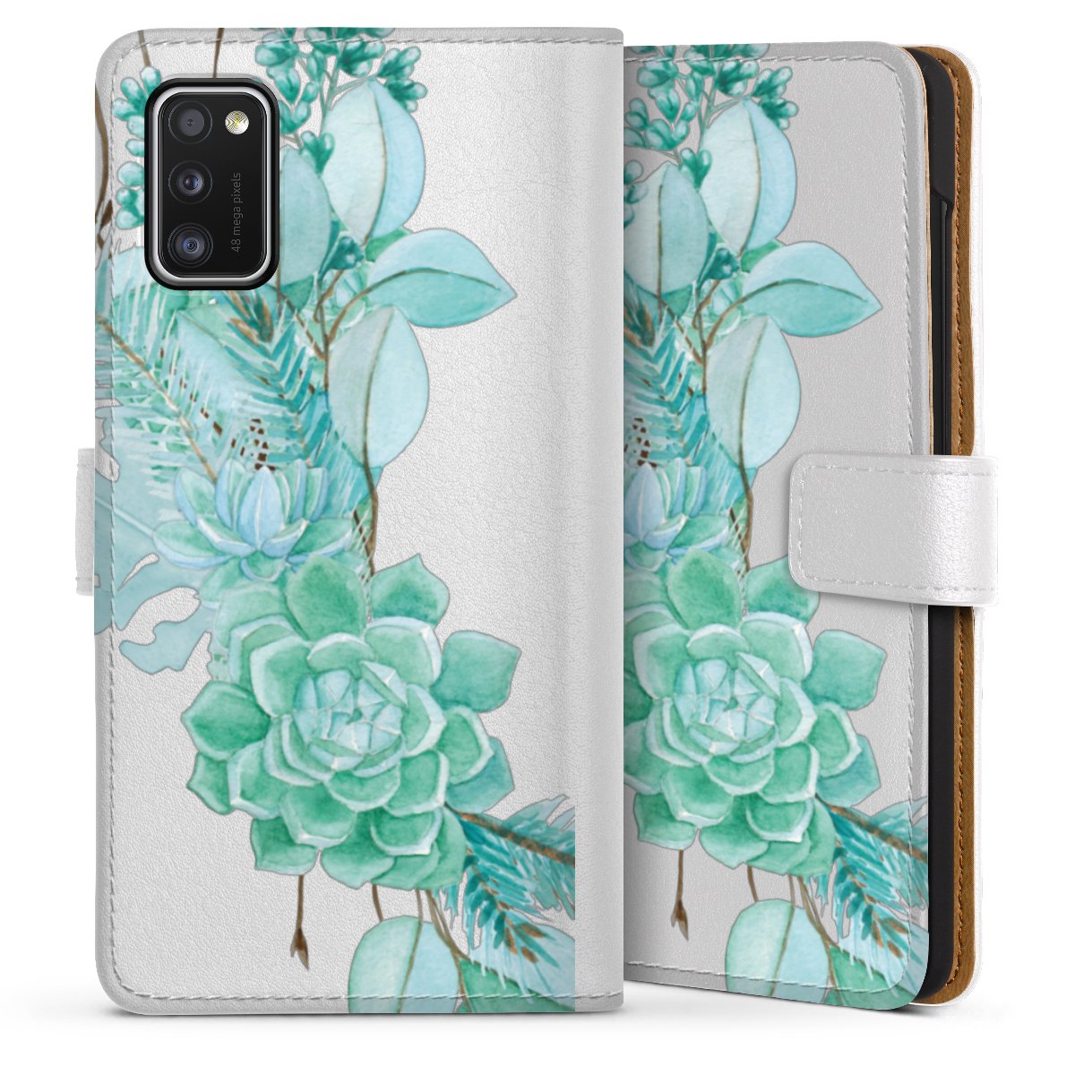 For our Sideflip Case we are using our advanced direct printing technology. The back and frontside are fully printabale, the inside of the phone bag is left unprinted. You can order the phone case without print, printed completely or also with a partial print.