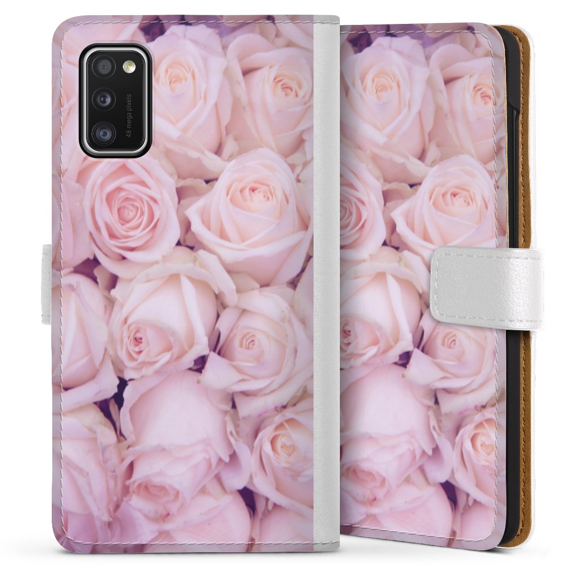 For our Sideflip Case we are using our advanced direct printing technology. The back and frontside are fully printabale, the inside of the phone bag is left unprinted. You can order the phone case without print, printed completely or also with a partial print.