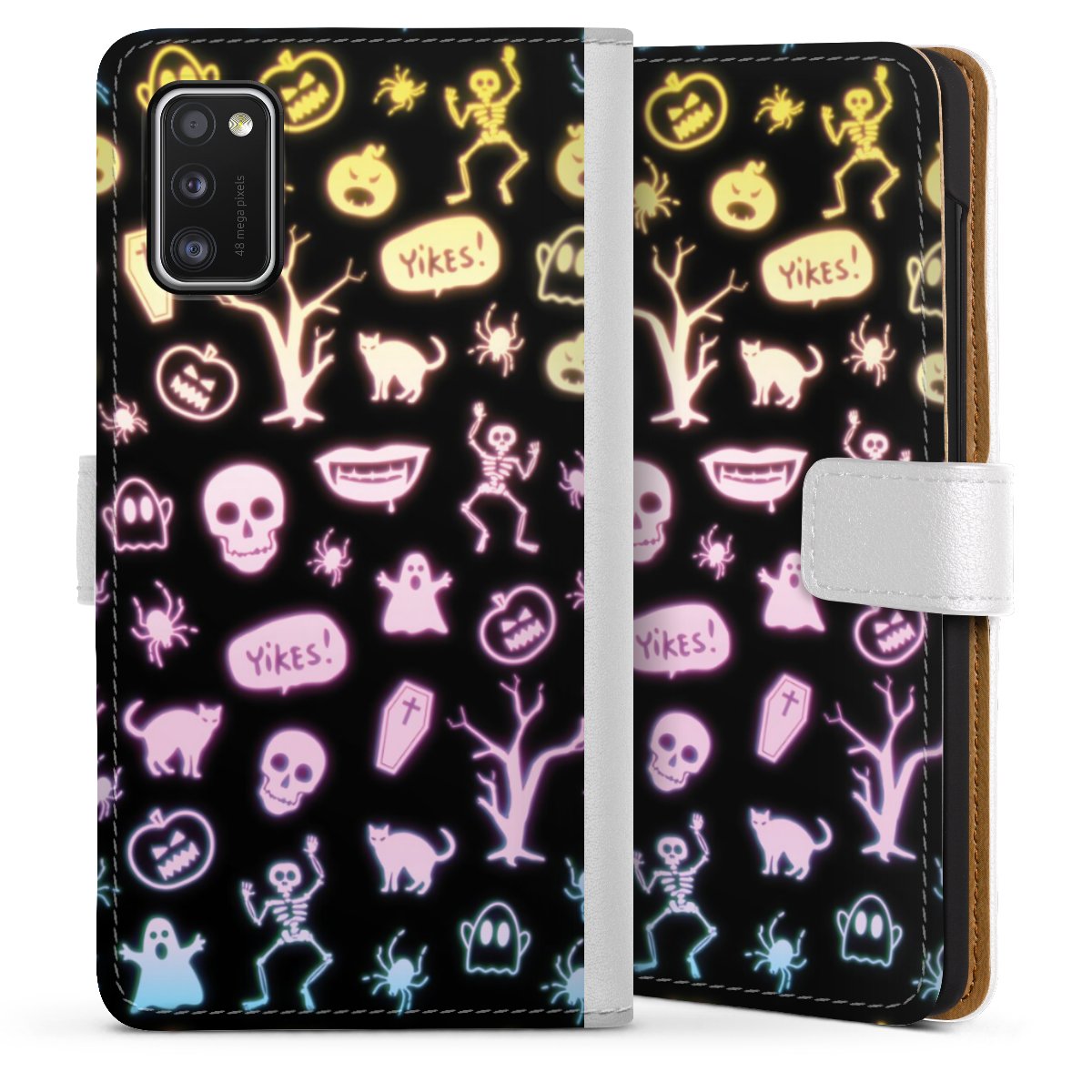 For our Sideflip Case we are using our advanced direct printing technology. The back and frontside are fully printabale, the inside of the phone bag is left unprinted. You can order the phone case without print, printed completely or also with a partial print.
