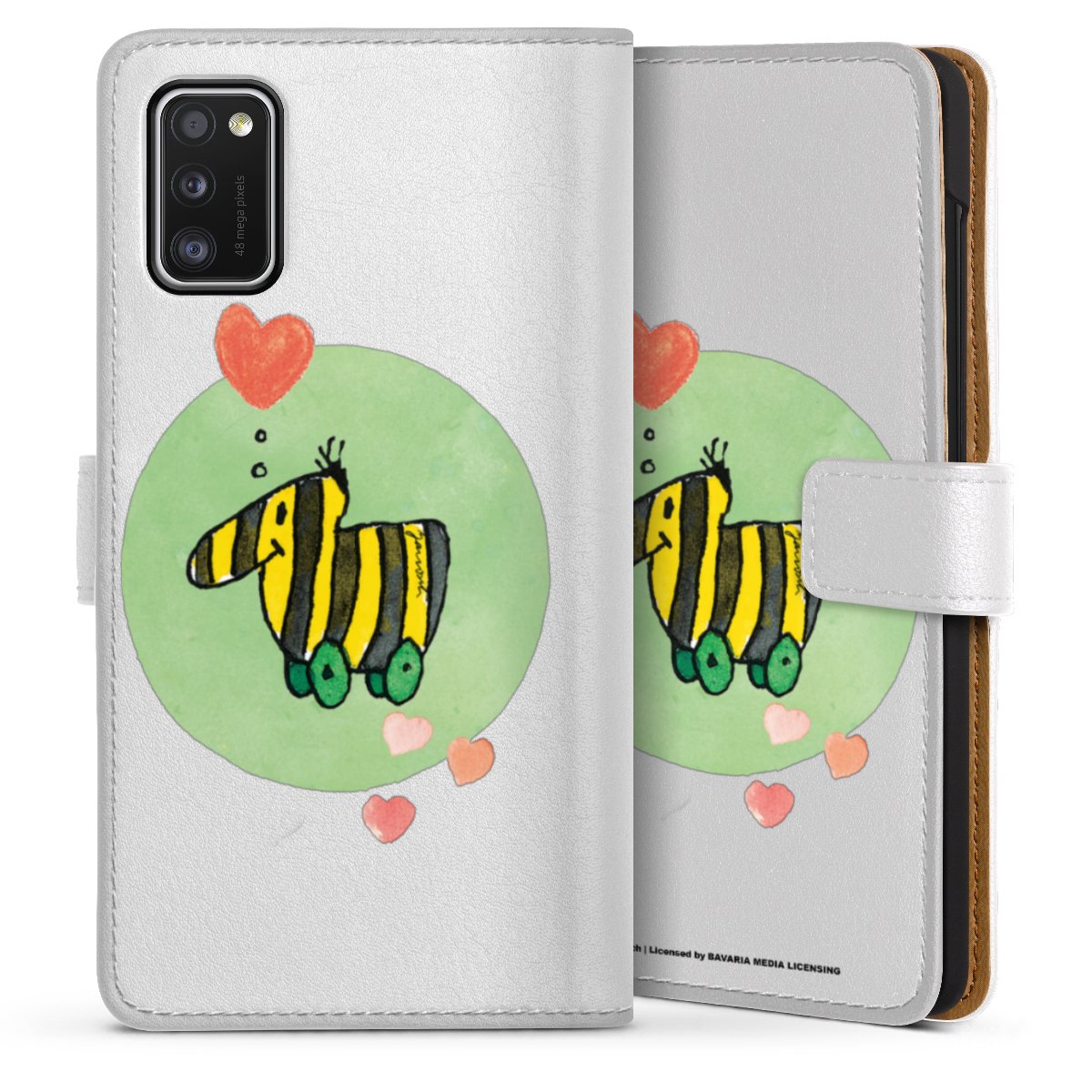 For our Sideflip Case we are using our advanced direct printing technology. The back and frontside are fully printabale, the inside of the phone bag is left unprinted. You can order the phone case without print, printed completely or also with a partial print.