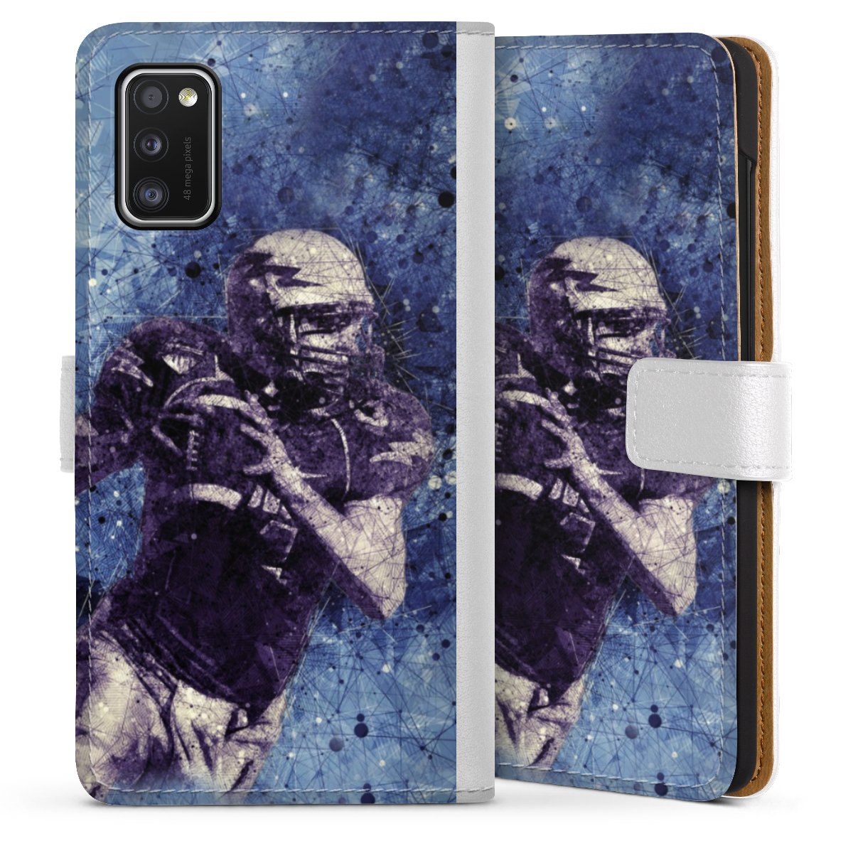 For our Sideflip Case we are using our advanced direct printing technology. The back and frontside are fully printabale, the inside of the phone bag is left unprinted. You can order the phone case without print, printed completely or also with a partial print.