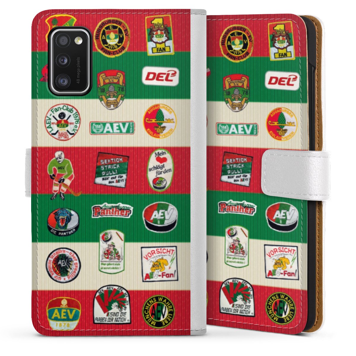 For our Sideflip Case we are using our advanced direct printing technology. The back and frontside are fully printabale, the inside of the phone bag is left unprinted. You can order the phone case without print, printed completely or also with a partial print.