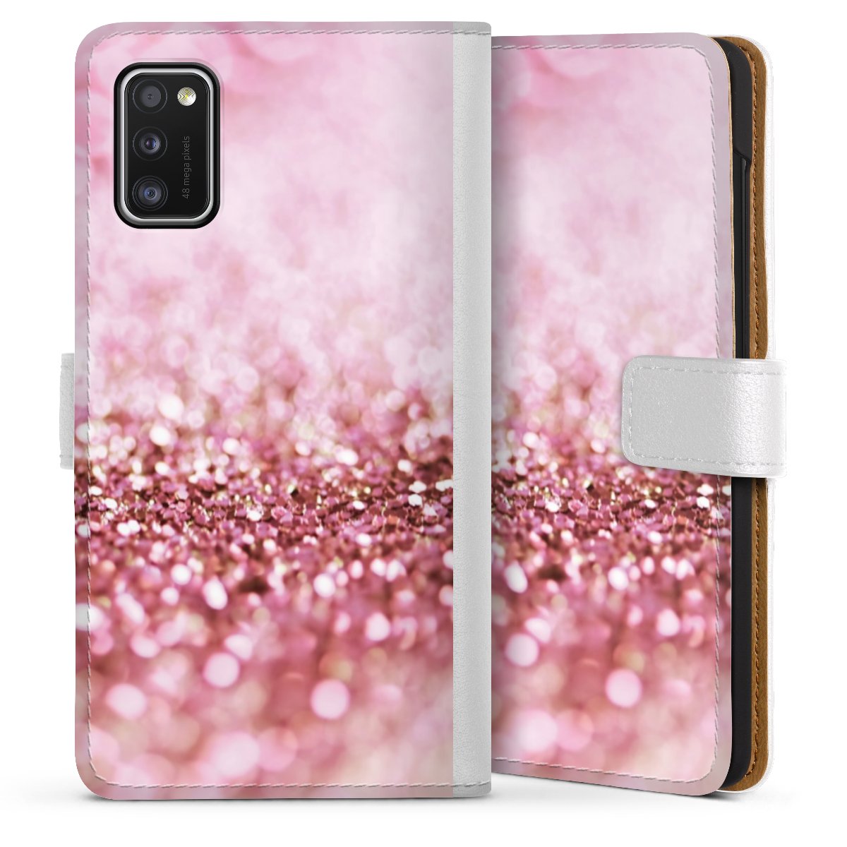 For our Sideflip Case we are using our advanced direct printing technology. The back and frontside are fully printabale, the inside of the phone bag is left unprinted. You can order the phone case without print, printed completely or also with a partial print.