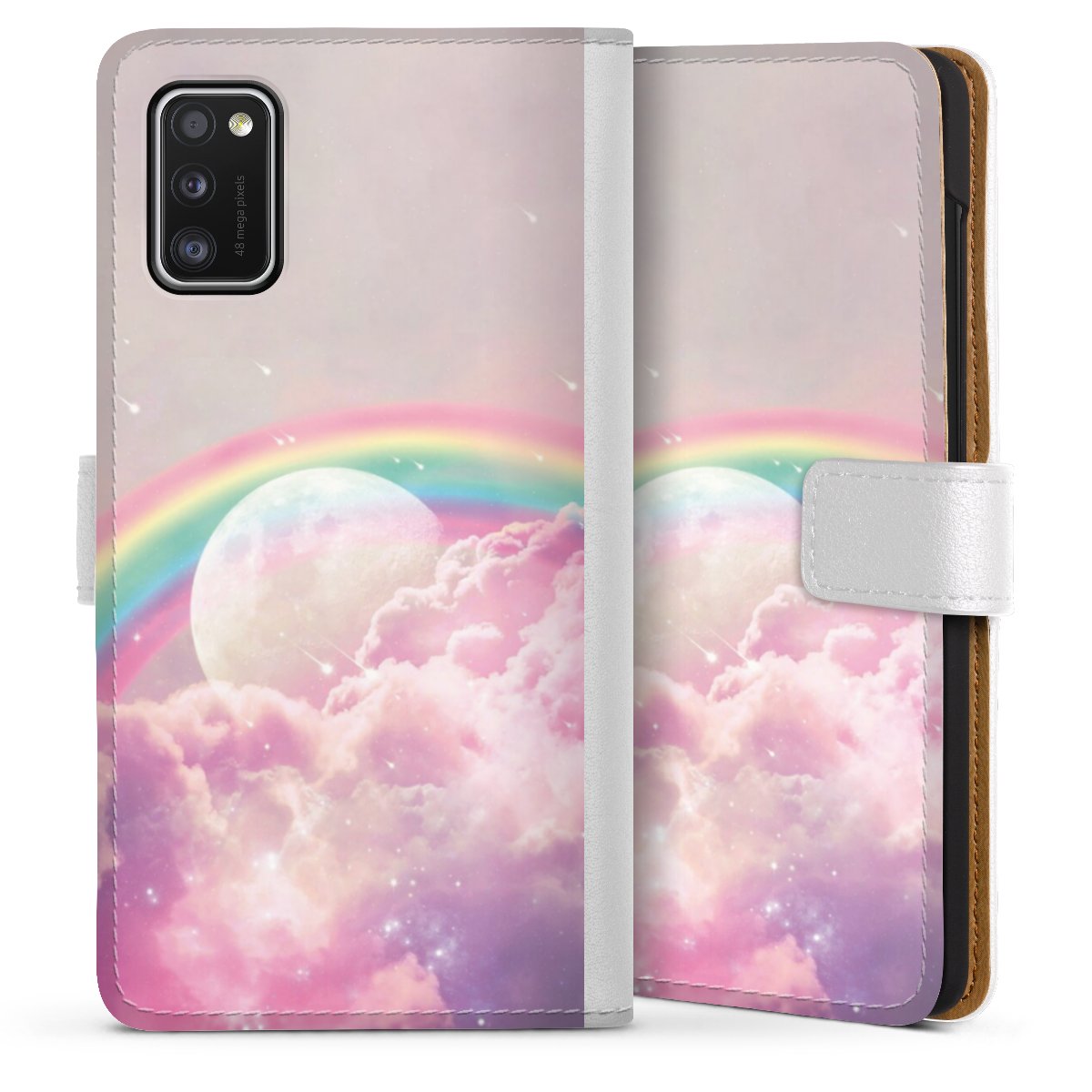 For our Sideflip Case we are using our advanced direct printing technology. The back and frontside are fully printabale, the inside of the phone bag is left unprinted. You can order the phone case without print, printed completely or also with a partial print.