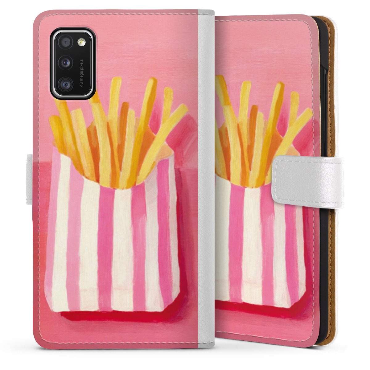 For our Sideflip Case we are using our advanced direct printing technology. The back and frontside are fully printabale, the inside of the phone bag is left unprinted. You can order the phone case without print, printed completely or also with a partial print.