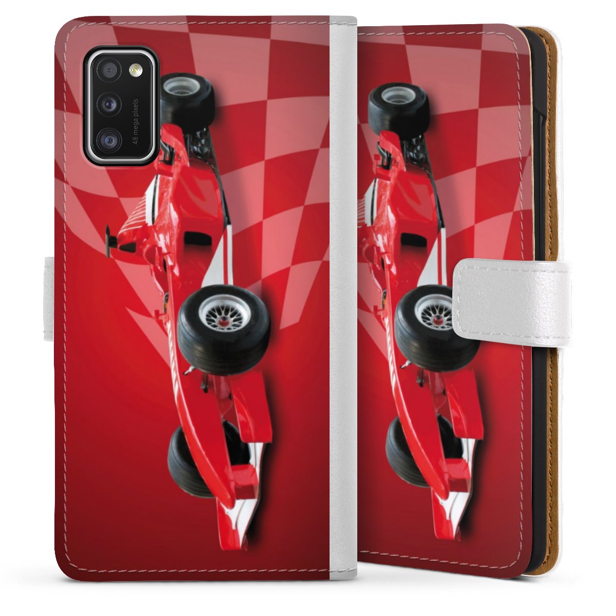 For our Sideflip Case we are using our advanced direct printing technology. The back and frontside are fully printabale, the inside of the phone bag is left unprinted. You can order the phone case without print, printed completely or also with a partial print.