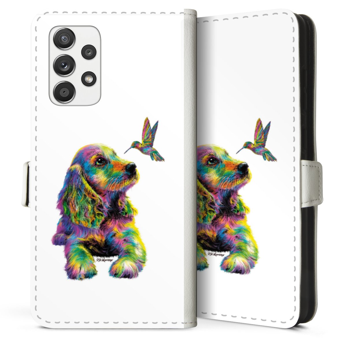 For our Sideflip Case we are using our advanced direct printing technology. The back and frontside are fully printabale, the inside of the phone bag is left unprinted. You can order the phone case without print, printed completely or also with a partial print.