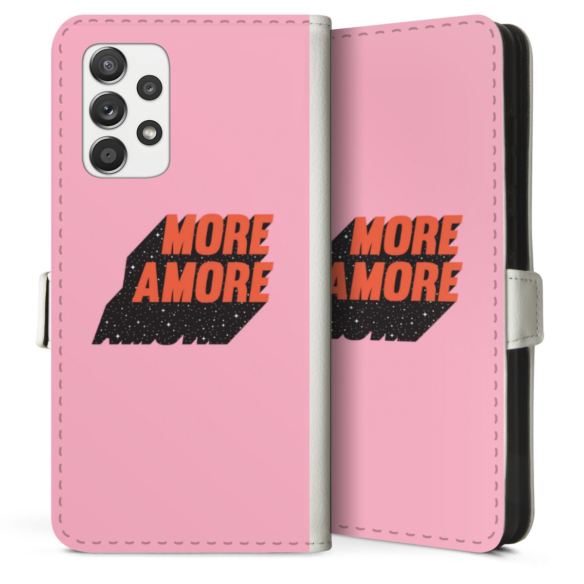 For our Sideflip Case we are using our advanced direct printing technology. The back and frontside are fully printabale, the inside of the phone bag is left unprinted. You can order the phone case without print, printed completely or also with a partial print.