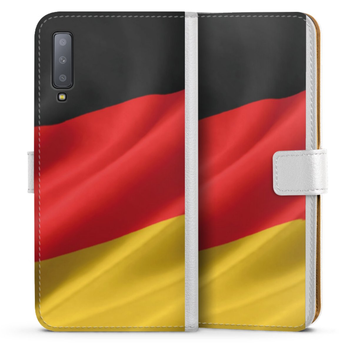 For our Sideflip Case we are using our advanced direct printing technology. The back and frontside are fully printabale, the inside of the phone bag is left unprinted. You can order the phone case without print, printed completely or also with a partial print.