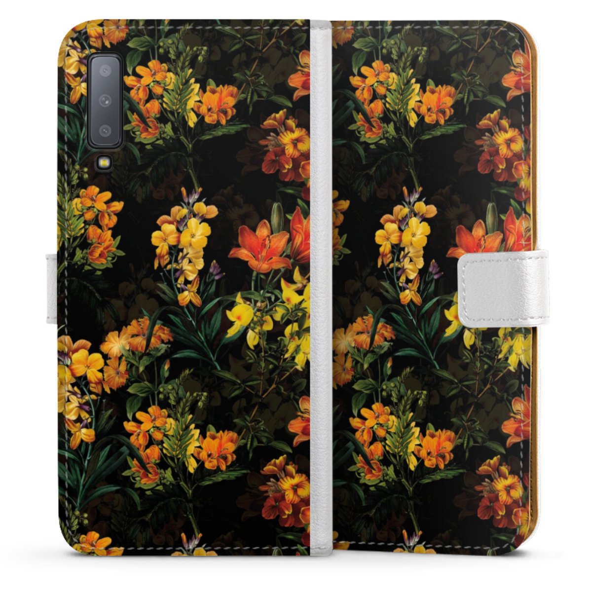 For our Sideflip Case we are using our advanced direct printing technology. The back and frontside are fully printabale, the inside of the phone bag is left unprinted. You can order the phone case without print, printed completely or also with a partial print.