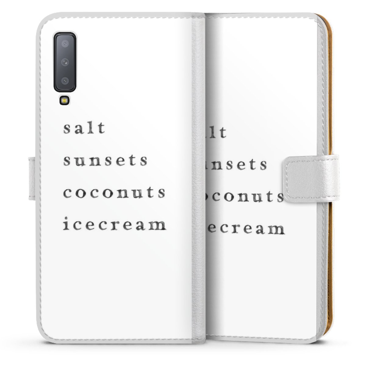 For our Sideflip Case we are using our advanced direct printing technology. The back and frontside are fully printabale, the inside of the phone bag is left unprinted. You can order the phone case without print, printed completely or also with a partial print.