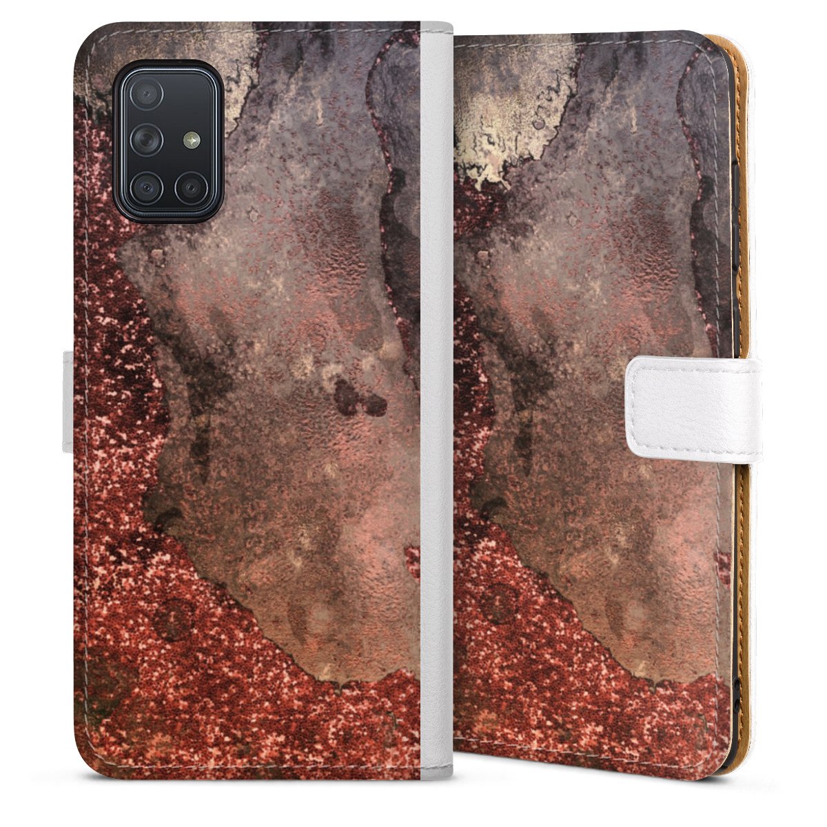 For our Sideflip Case we are using our advanced direct printing technology. The back and frontside are fully printabale, the inside of the phone bag is left unprinted. You can order the phone case without print, printed completely or also with a partial print.
