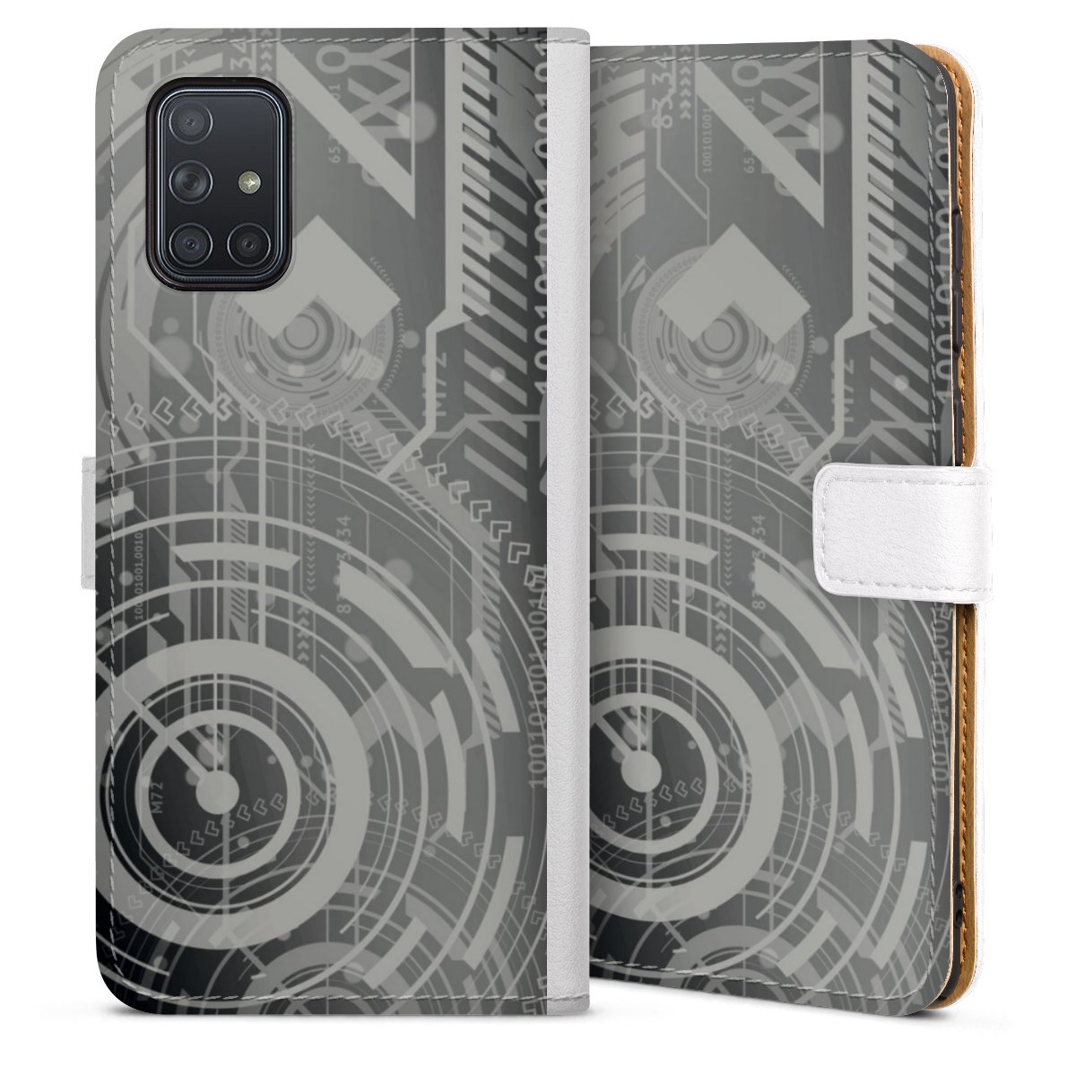 For our Sideflip Case we are using our advanced direct printing technology. The back and frontside are fully printabale, the inside of the phone bag is left unprinted. You can order the phone case without print, printed completely or also with a partial print.