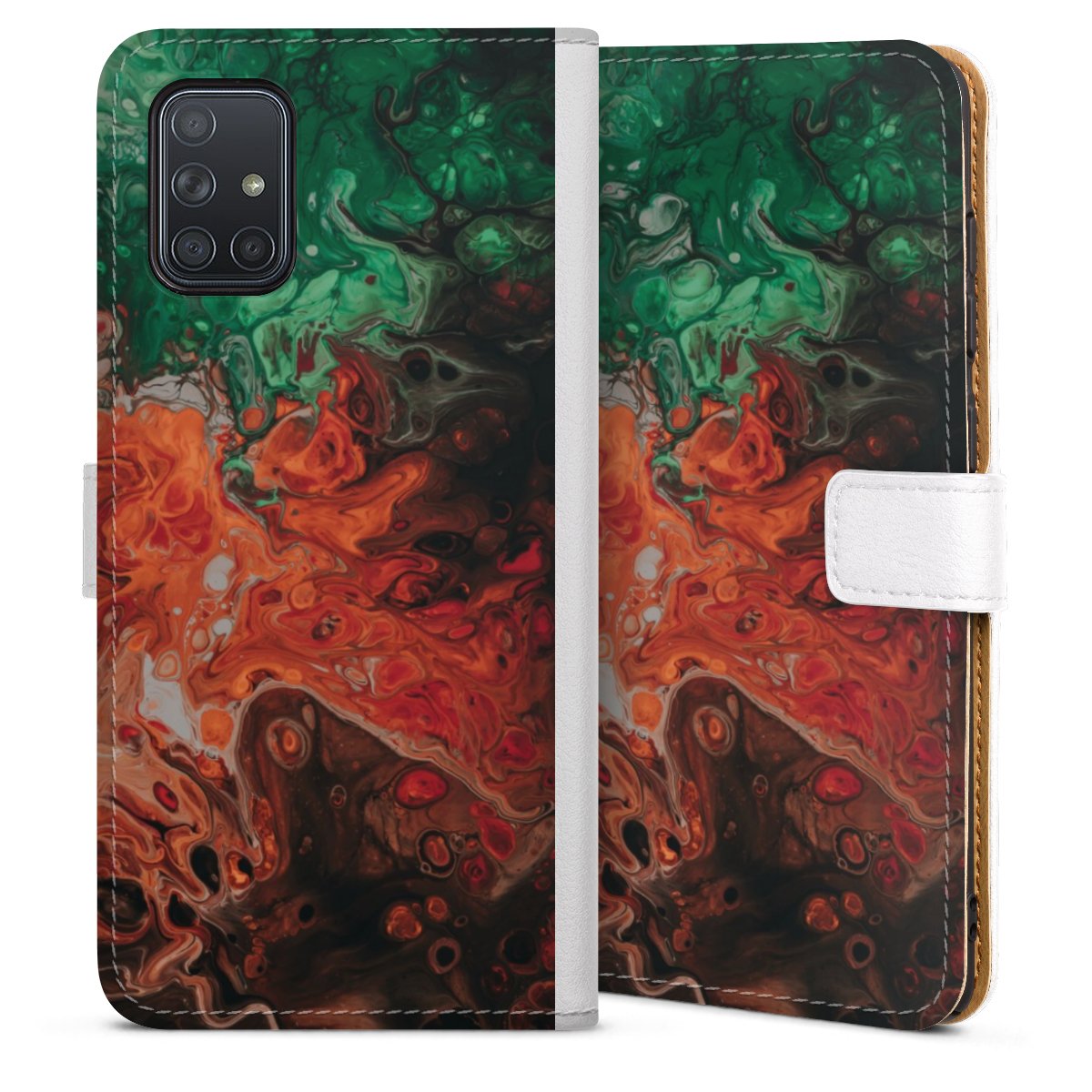 For our Sideflip Case we are using our advanced direct printing technology. The back and frontside are fully printabale, the inside of the phone bag is left unprinted. You can order the phone case without print, printed completely or also with a partial print.