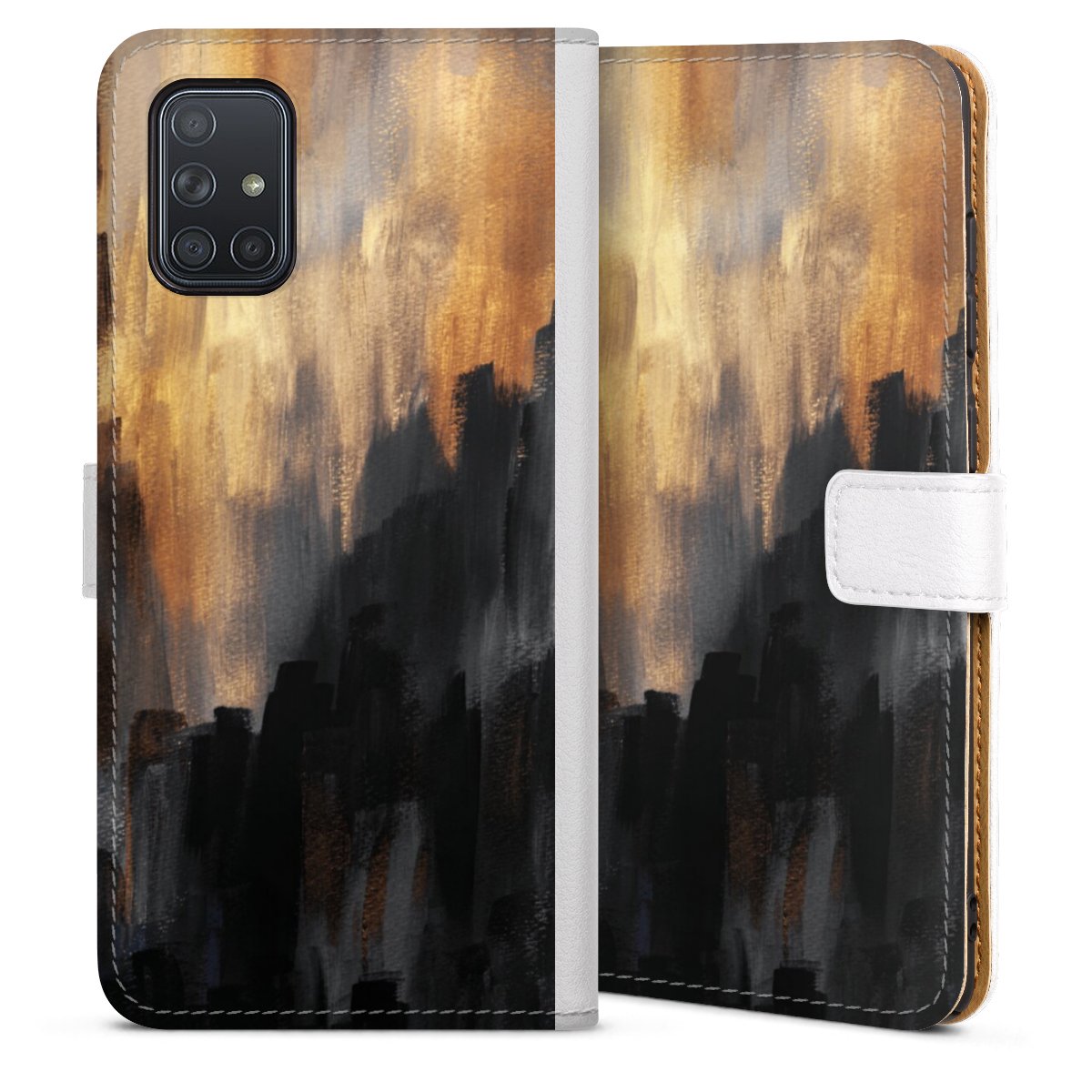 For our Sideflip Case we are using our advanced direct printing technology. The back and frontside are fully printabale, the inside of the phone bag is left unprinted. You can order the phone case without print, printed completely or also with a partial print.