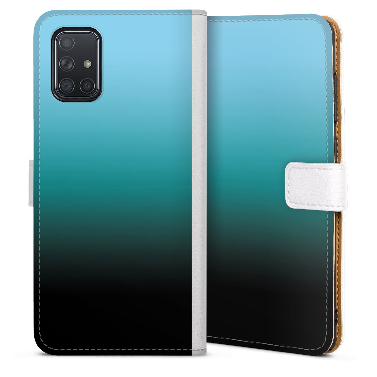 For our Sideflip Case we are using our advanced direct printing technology. The back and frontside are fully printabale, the inside of the phone bag is left unprinted. You can order the phone case without print, printed completely or also with a partial print.