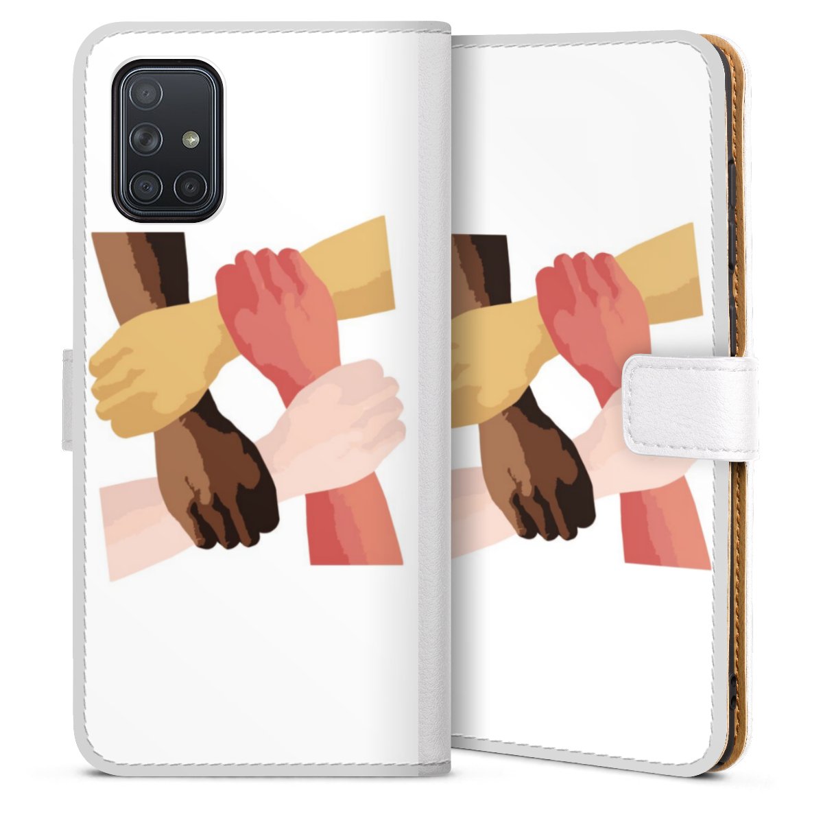 For our Sideflip Case we are using our advanced direct printing technology. The back and frontside are fully printabale, the inside of the phone bag is left unprinted. You can order the phone case without print, printed completely or also with a partial print.
