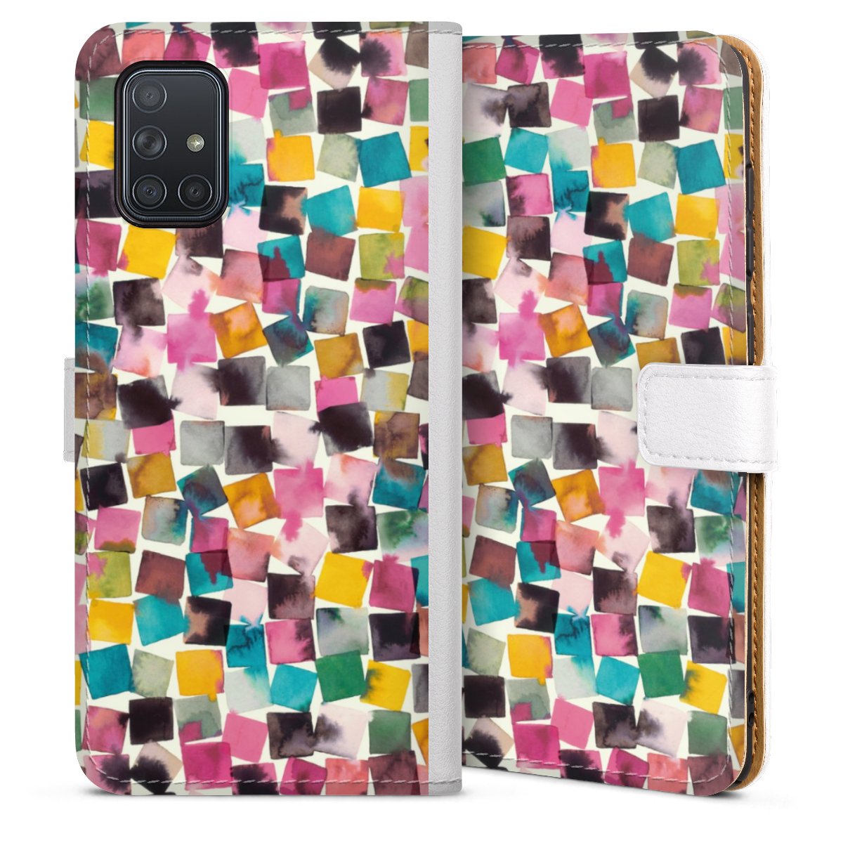 For our Sideflip Case we are using our advanced direct printing technology. The back and frontside are fully printabale, the inside of the phone bag is left unprinted. You can order the phone case without print, printed completely or also with a partial print.