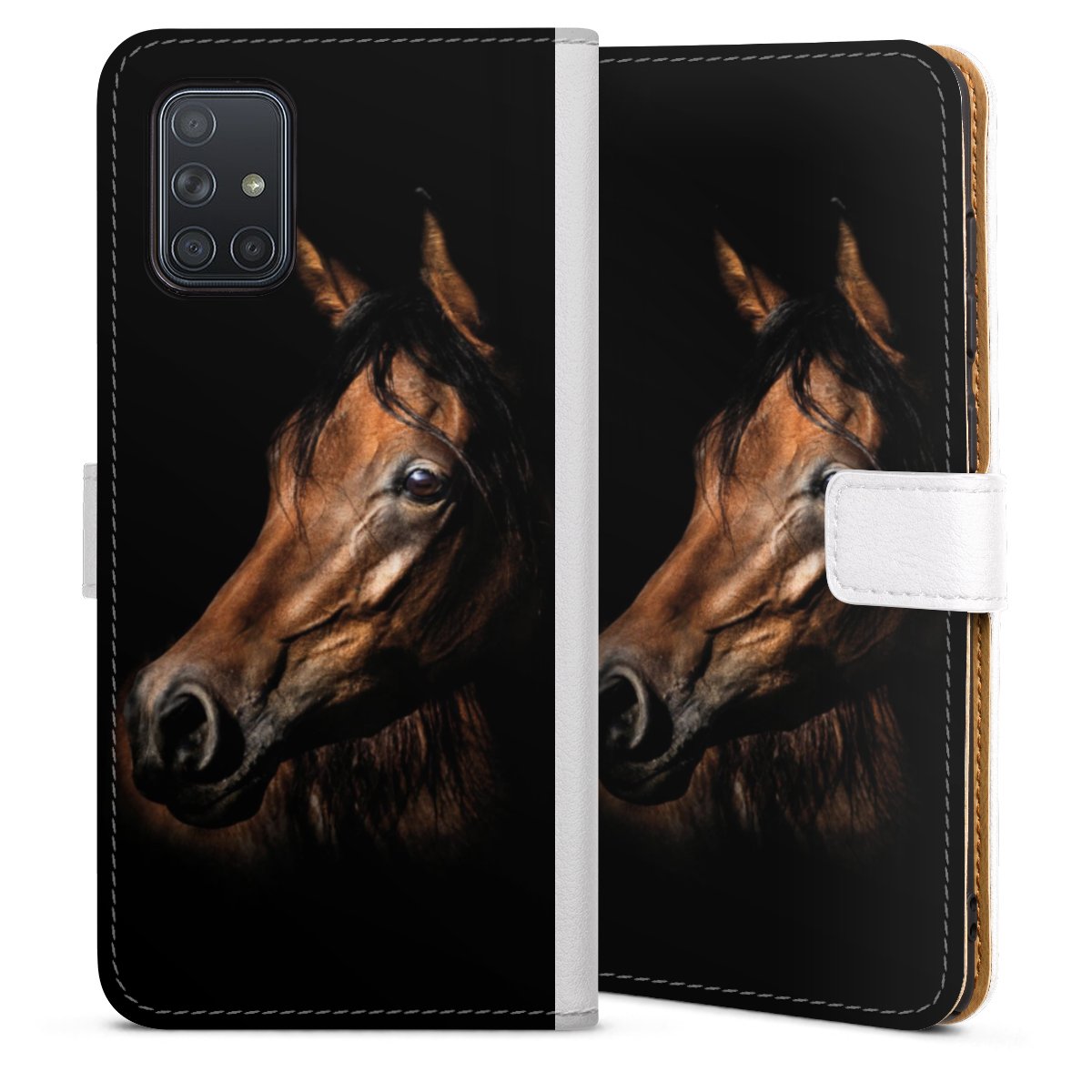 For our Sideflip Case we are using our advanced direct printing technology. The back and frontside are fully printabale, the inside of the phone bag is left unprinted. You can order the phone case without print, printed completely or also with a partial print.