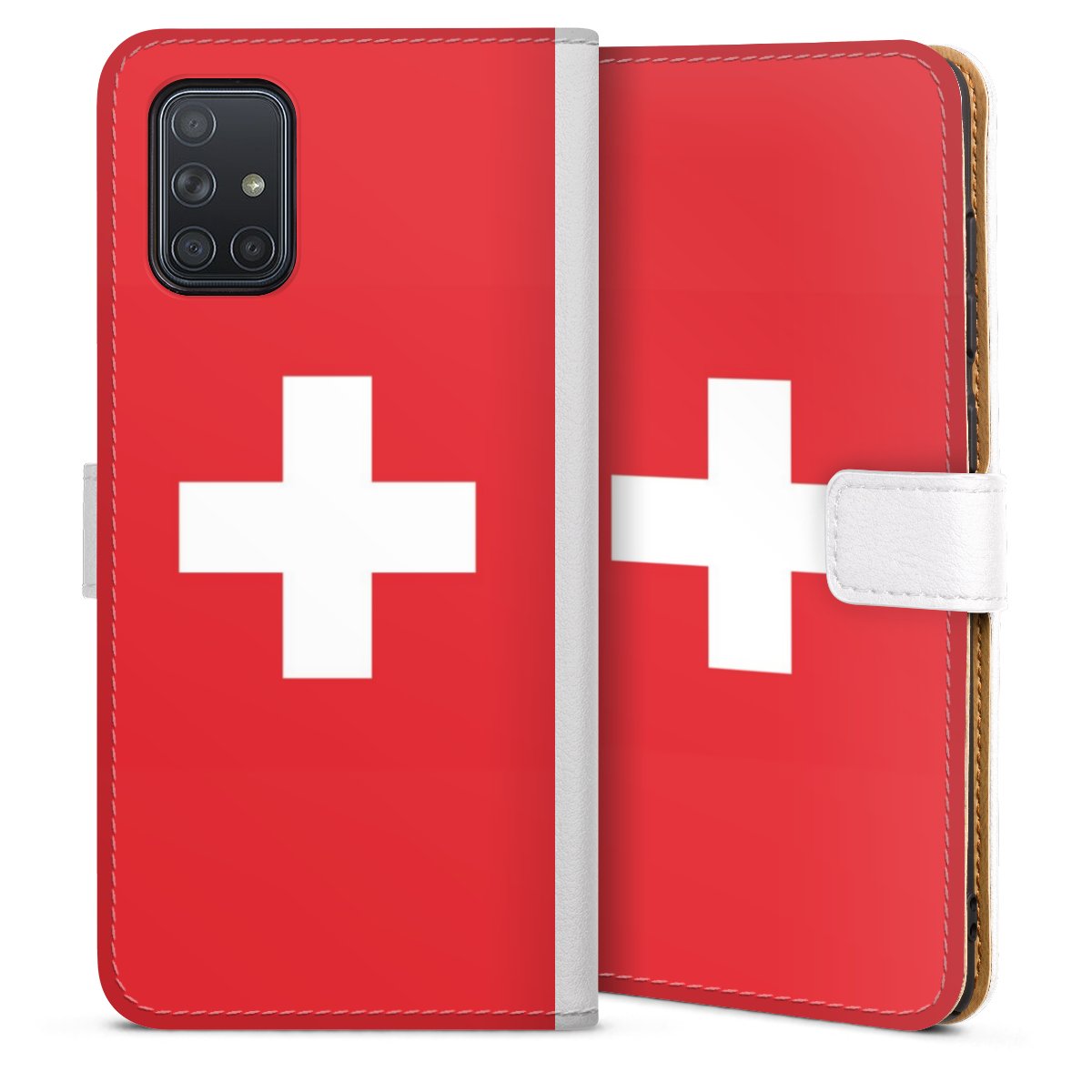 For our Sideflip Case we are using our advanced direct printing technology. The back and frontside are fully printabale, the inside of the phone bag is left unprinted. You can order the phone case without print, printed completely or also with a partial print.